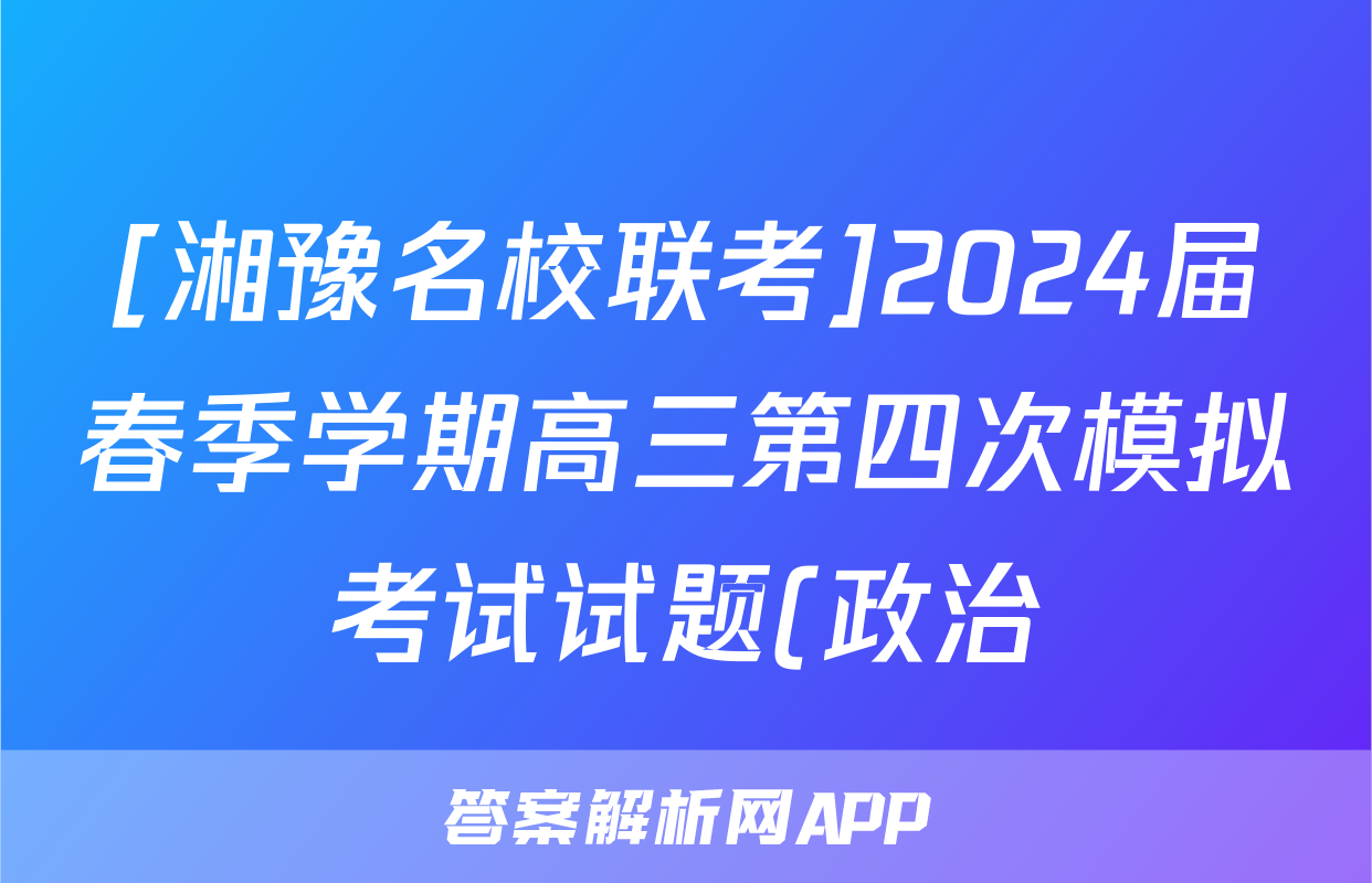 [湘豫名校联考]2024届春季学期高三第四次模拟考试试题(政治)正在持续更新,目前2024-2025衡中同卷答案网为大家整理了相关试题及答案,供大家查缺补漏,高效提升成绩。