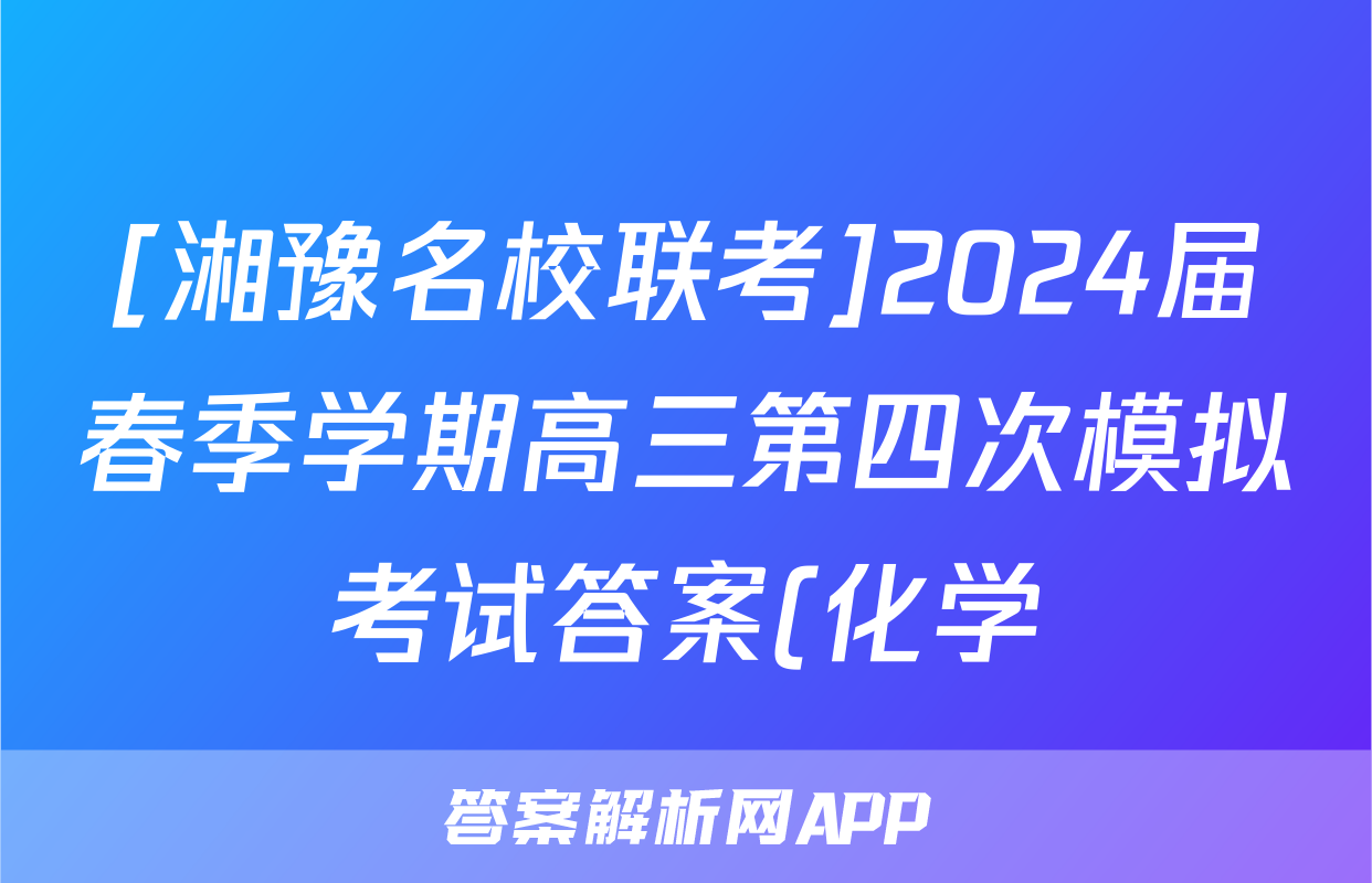 [湘豫名校联考]2024届春季学期高三第四次模拟考试答案(化学)正在持续更新,目前2024-2025衡中同卷答案网为大家整理了相关试题及答案,供大家查缺补漏,高效提升成绩。