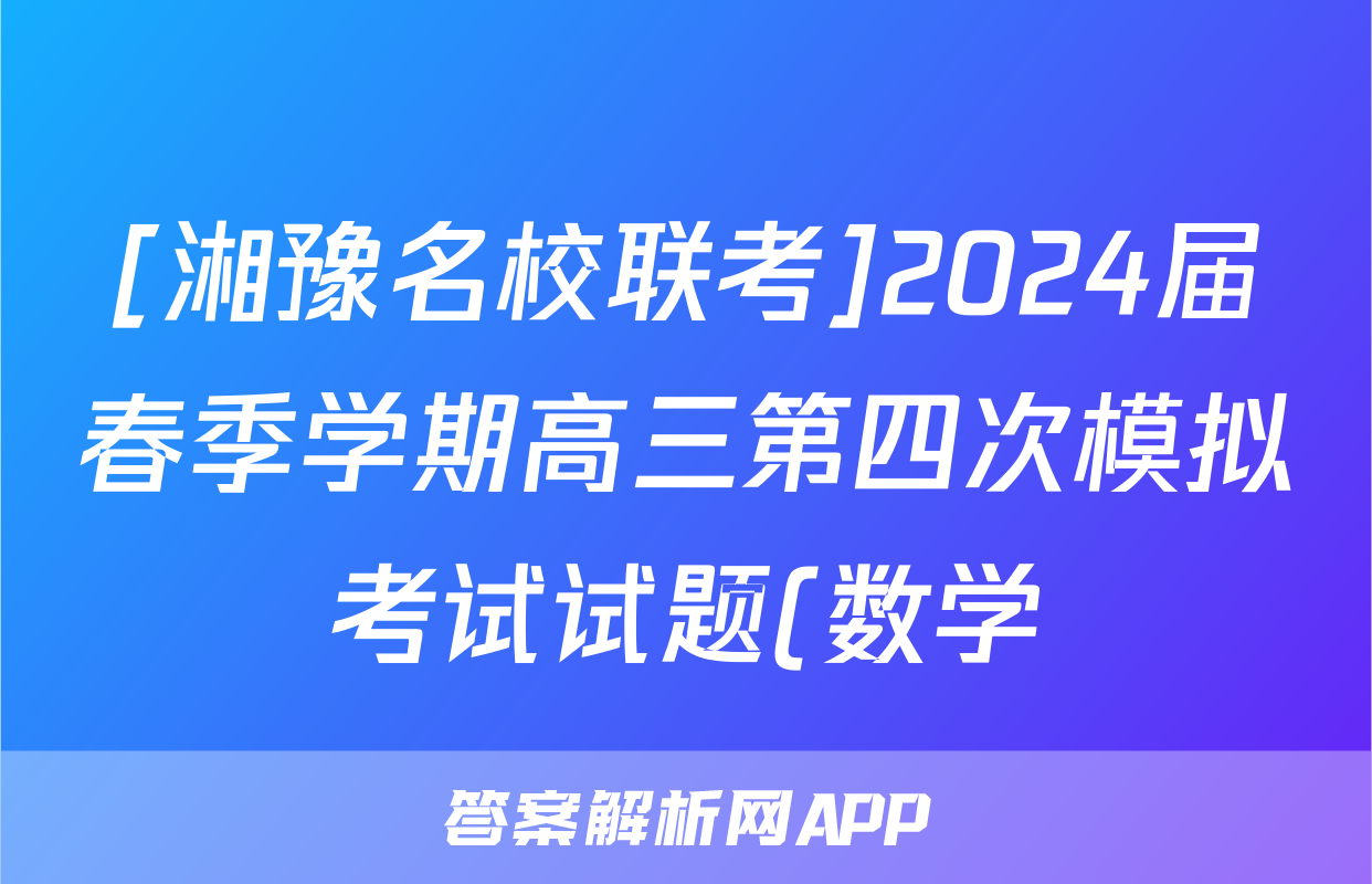 [湘豫名校联考]2024届春季学期高三第四次模拟考试试题(数学)正在持续更新,目前2024-2025衡中同卷答案网为大家整理了相关试题及答案,供大家查缺补漏,高效提升成绩。