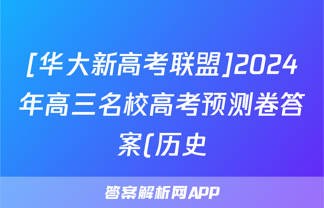[华大新高考联盟]2024年高三名校高考预测卷答案(历史)正在持续更新,目前2024-2025衡中同卷答案网为大家整理了相关试题及答案,供大家查缺补漏,高效提升成绩。