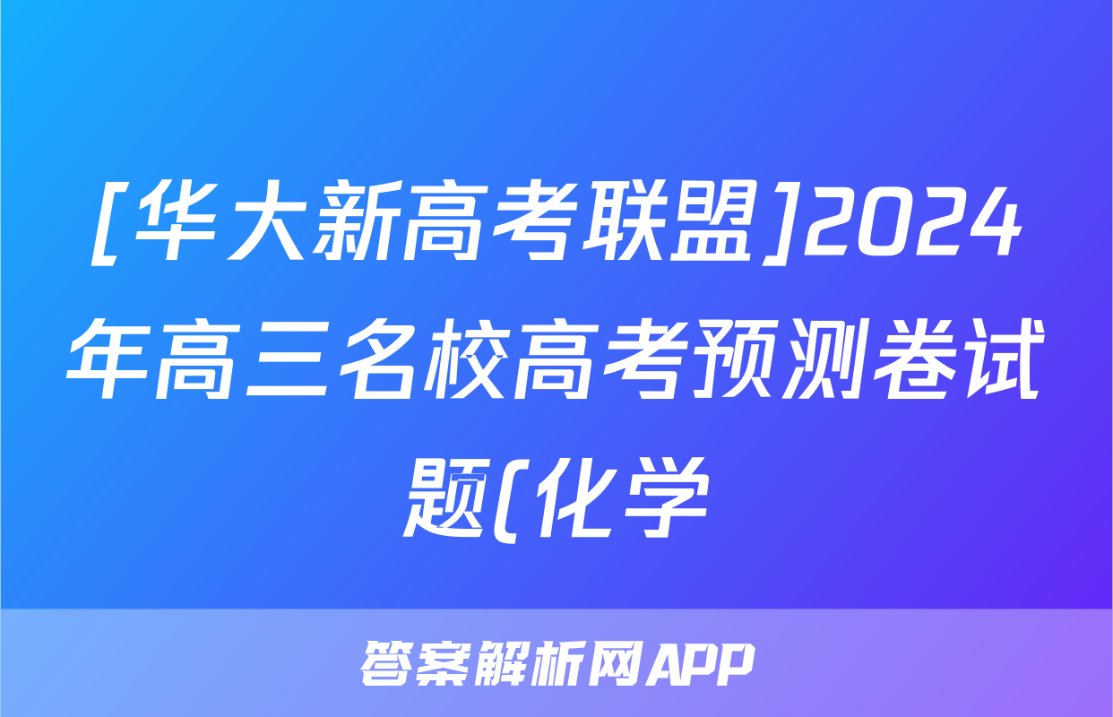 [华大新高考联盟]2024年高三名校高考预测卷试题(化学)正在持续更新,目前2024-2025衡中同卷答案网为大家整理了相关试题及答案,供大家查缺补漏,高效提升成绩。