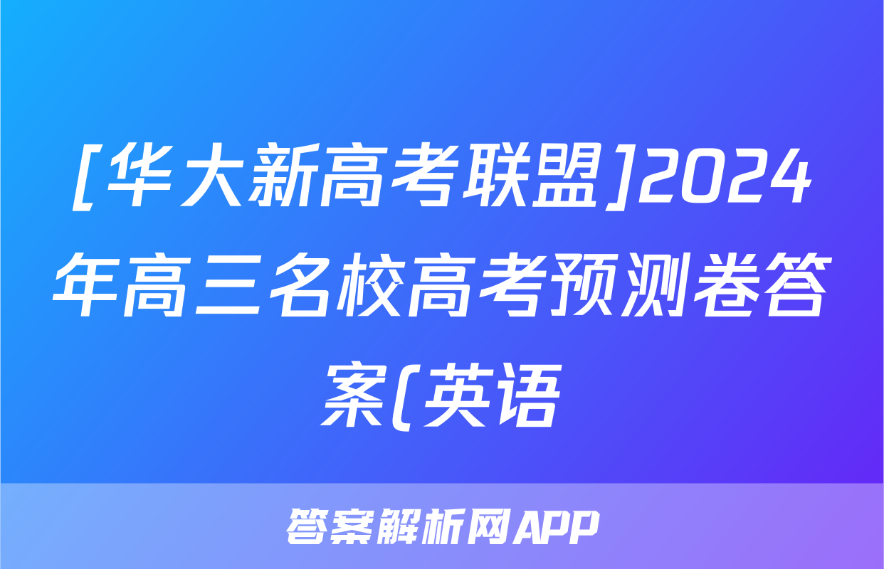 [华大新高考联盟]2024年高三名校高考预测卷答案(英语)正在持续更新,目前2024-2025衡中同卷答案网为大家整理了相关试题及答案,供大家查缺补漏,高效提升成绩。