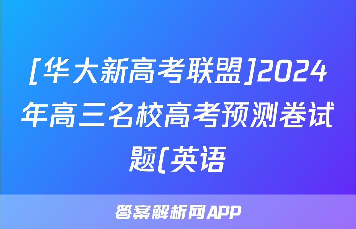 [华大新高考联盟]2024年高三名校高考预测卷试题(英语)正在持续更新,目前2024-2025衡中同卷答案网为大家整理了相关试题及答案,供大家查缺补漏,高效提升成绩。