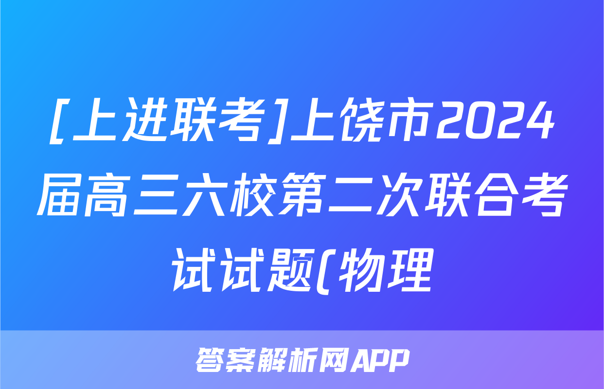 [上进联考]上饶市2024届高三六校第二次联合考试试题(物理)正在持续更新,目前2024-2025衡中同卷答案网为大家整理了相关试题及答案,供大家查缺补漏,高效提升成绩。