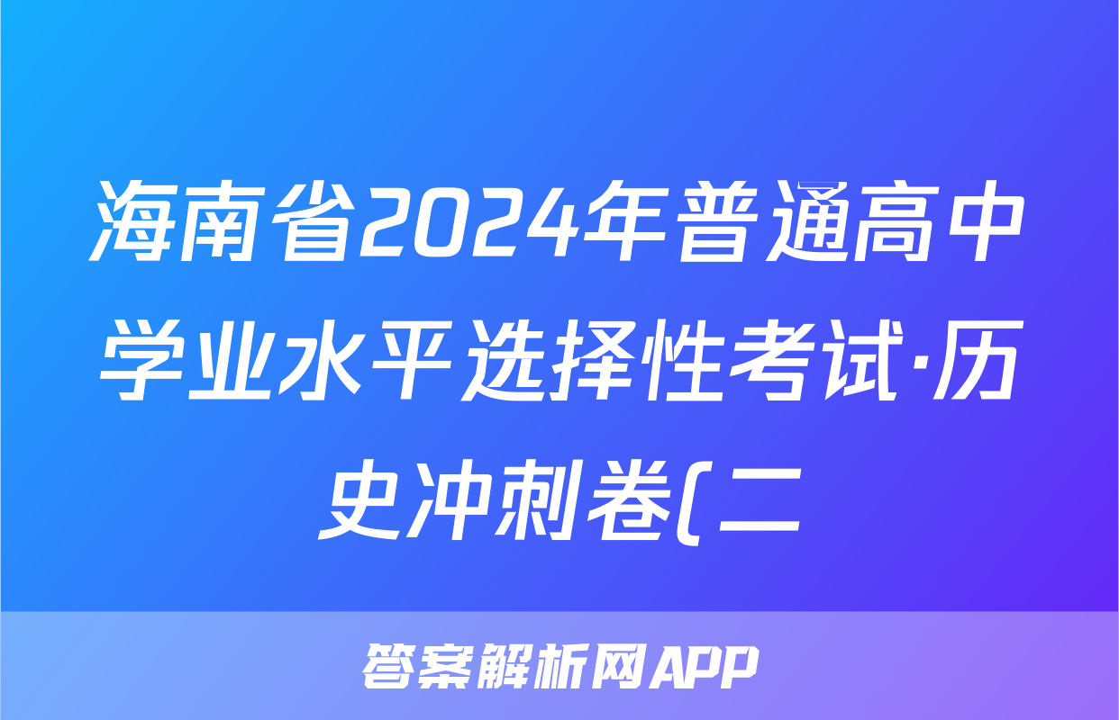 海南省2024年普通高中学业水平选择性考试·历史冲刺卷(二)2[24·(新高考)CCJ·历史·HAIN]试题正在持续更新,目前2024-2025衡中同卷答案网为大家整理了相关试题及答案,供大家查缺补漏,高效提升成绩。