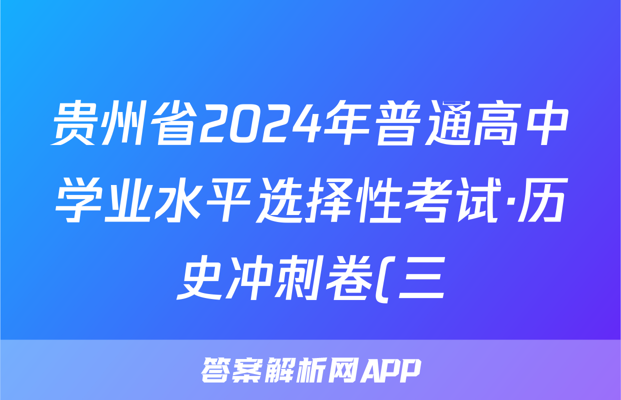 贵州省2024年普通高中学业水平选择性考试·历史冲刺卷(三)3[24·(新高考)CCJ·历史·GZ]答案正在持续更新,目前2024-2025衡中同卷答案网为大家整理了相关试题及答案,供大家查缺补漏,高效提升成绩。