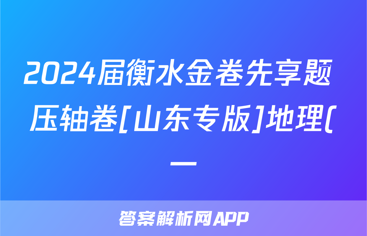 2024届衡水金卷先享题 压轴卷[山东专版]地理(一)1答案正在持续更新,目前2024-2025衡中同卷答案网为大家整理了相关试题及答案,供大家查缺补漏,高效提升成绩。