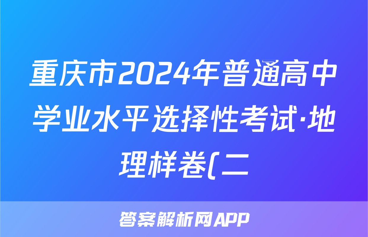 重庆市2024年普通高中学业水平选择性考试·地理样卷(二)2[24·(新高考)高考样卷·地理·CQ]试题正在持续更新,目前2024-2025衡中同卷答案网为大家整理了相关试题及答案,供大家查缺补漏,高效提升成绩。