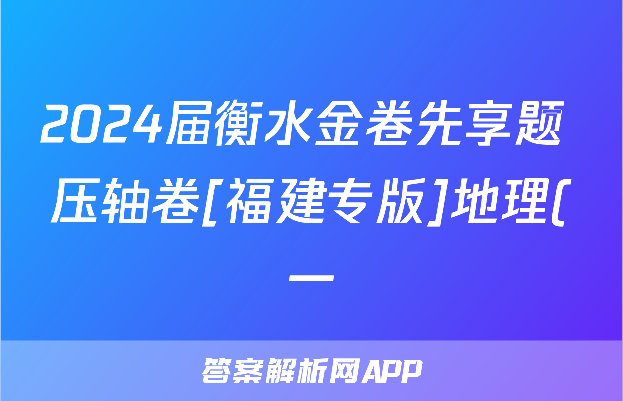 2024届衡水金卷先享题 压轴卷[福建专版]地理(一)1试题正在持续更新,目前2024-2025衡中同卷答案网为大家整理了相关试题及答案,供大家查缺补漏,高效提升成绩。
