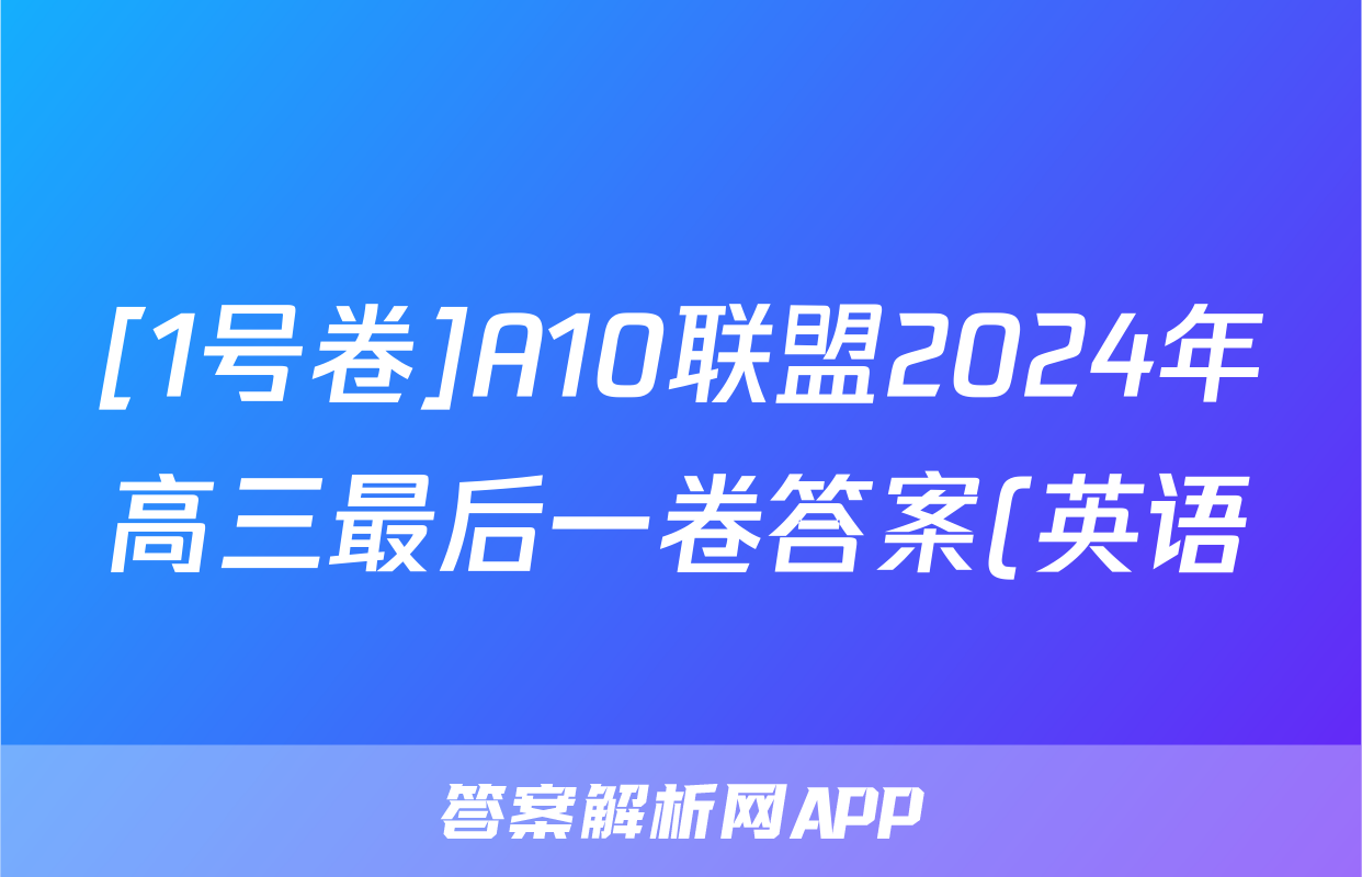 [1号卷]A10联盟2024年高三最后一卷答案(英语)正在持续更新,目前2024-2025衡中同卷答案网为大家整理了相关试题及答案,供大家查缺补漏,高效提升成绩。