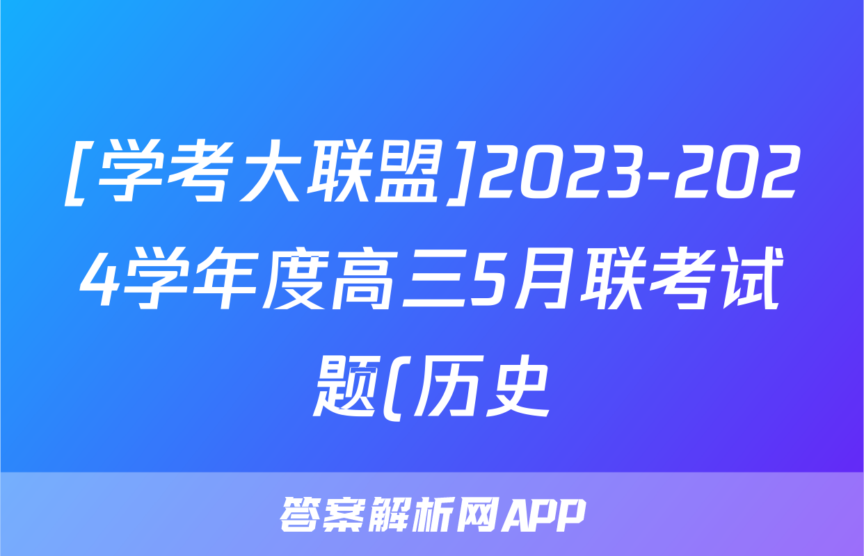 [学考大联盟]2023-2024学年度高三5月联考试题(历史)正在持续更新,目前2024-2025衡中同卷答案网为大家整理了相关试题及答案,供大家查缺补漏,高效提升成绩。