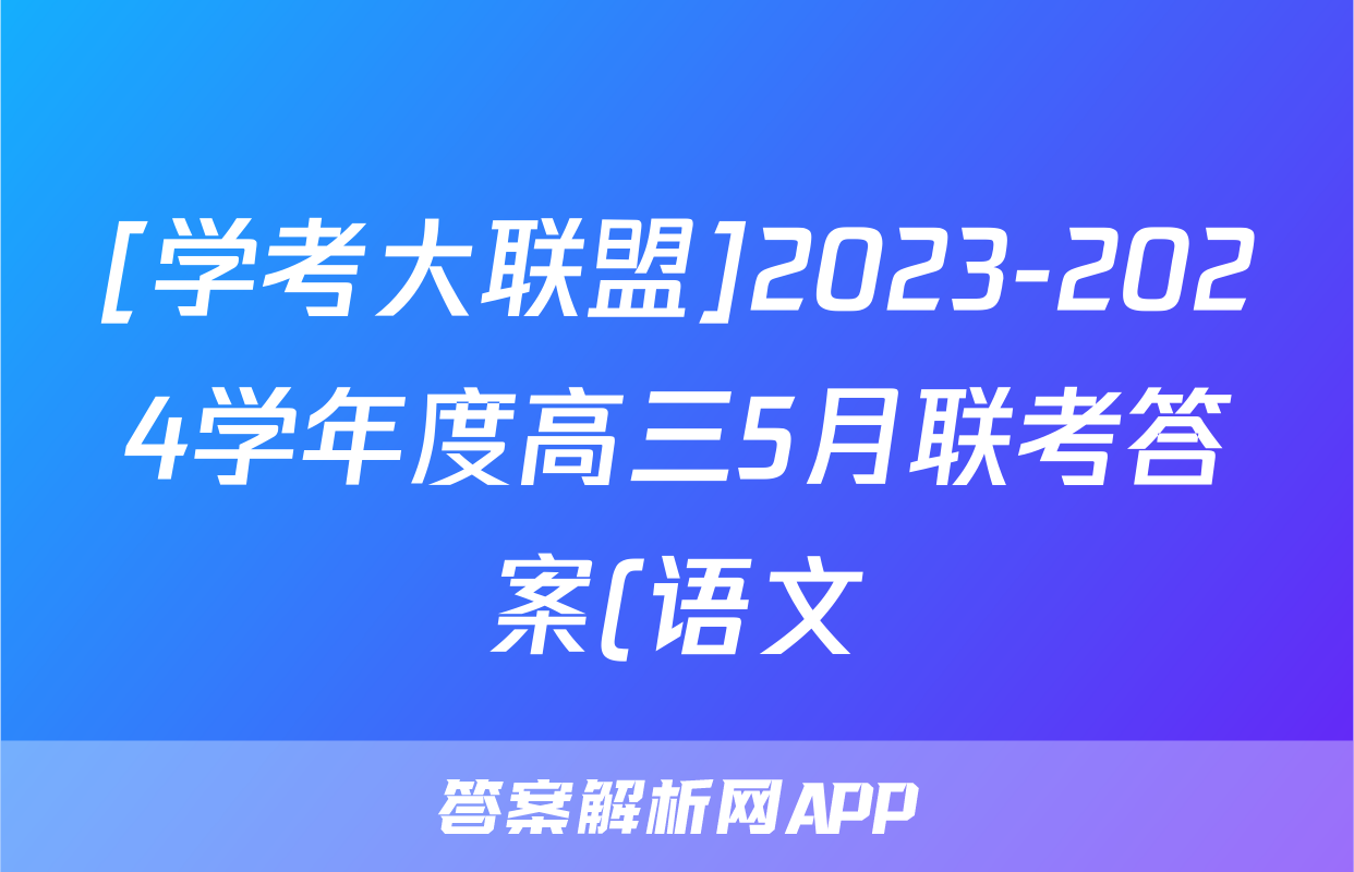 [学考大联盟]2023-2024学年度高三5月联考答案(语文)正在持续更新,目前2024-2025衡中同卷答案网为大家整理了相关试题及答案,供大家查缺补漏,高效提升成绩。
