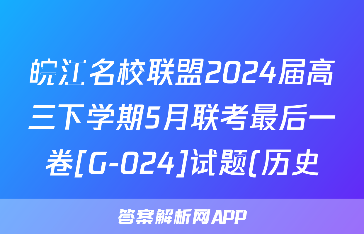 皖江名校联盟2024届高三下学期5月联考最后一卷[G-024]试题(历史)正在持续更新,目前2024-2025衡中同卷答案网为大家整理了相关试题及答案,供大家查缺补漏,高效提升成绩。
