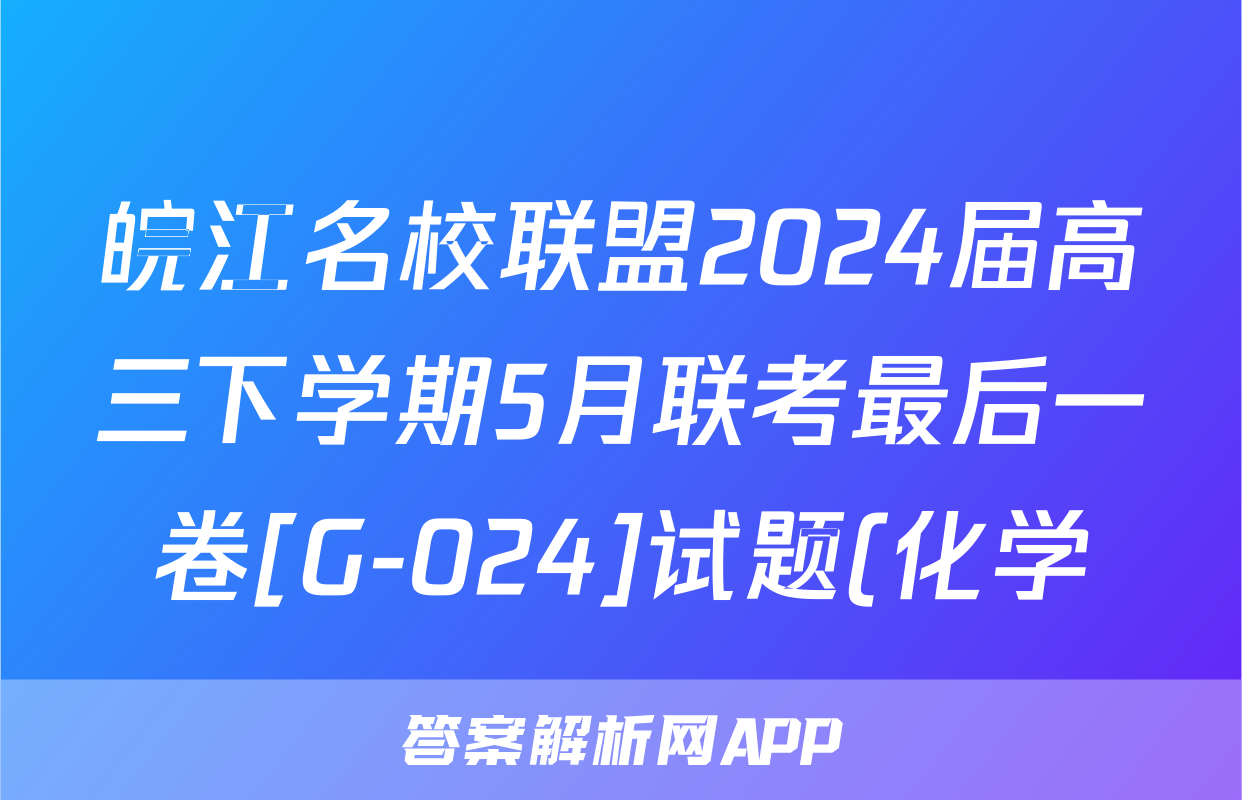皖江名校联盟2024届高三下学期5月联考最后一卷[G-024]试题(化学)正在持续更新,目前2024-2025衡中同卷答案网为大家整理了相关试题及答案,供大家查缺补漏,高效提升成绩。