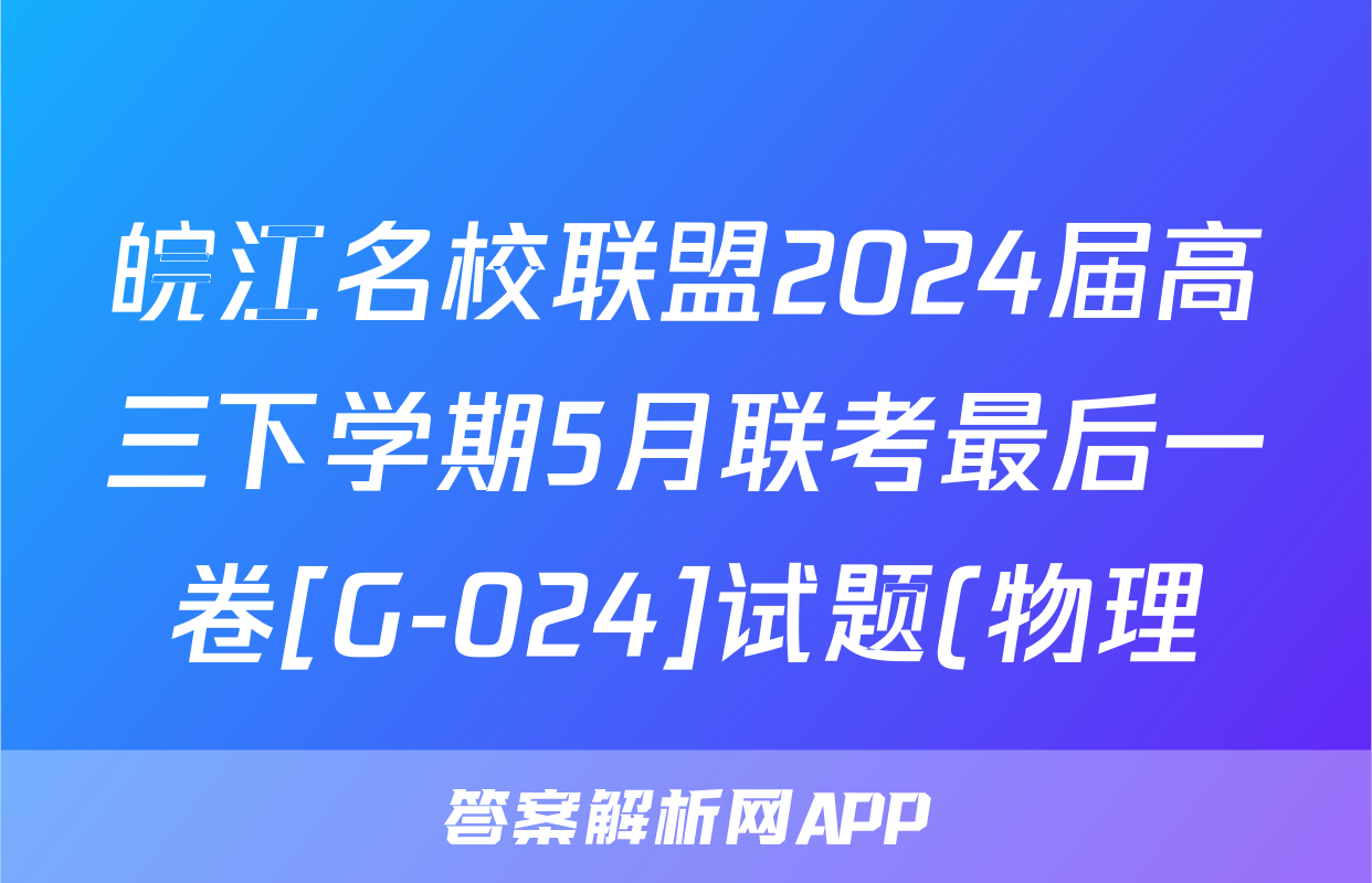 皖江名校联盟2024届高三下学期5月联考最后一卷[G-024]试题(物理)正在持续更新,目前2024-2025衡中同卷答案网为大家整理了相关试题及答案,供大家查缺补漏,高效提升成绩。