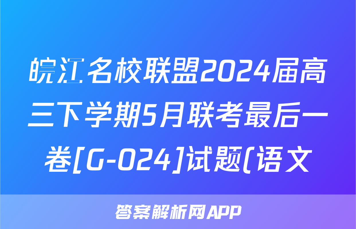 皖江名校联盟2024届高三下学期5月联考最后一卷[G-024]试题(语文)正在持续更新,目前2024-2025衡中同卷答案网为大家整理了相关试题及答案,供大家查缺补漏,高效提升成绩。