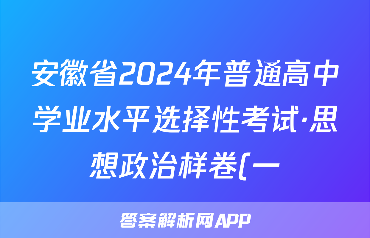 安徽省2024年普通高中学业水平选择性考试·思想政治样卷(一)1[24·(新高考)高考样卷·思想政治·AH]答案正在持续更新,目前2024-2025衡中同卷答案网为大家整理了相关试题及答案,供大家查缺补漏,高效提升成绩。