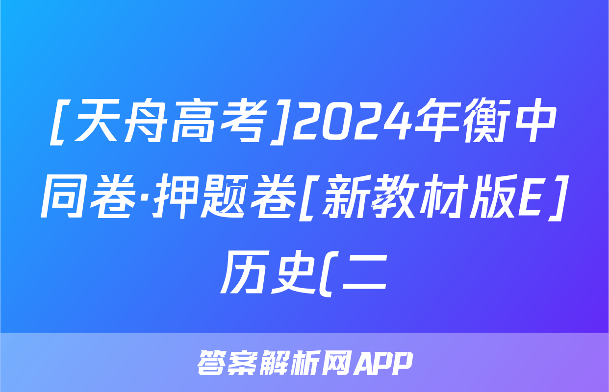 [天舟高考]2024年衡中同卷·押题卷[新教材版E]历史(二)2答案正在持续更新,目前2024-2025衡中同卷答案网为大家整理了相关试题及答案,供大家查缺补漏,高效提升成绩。