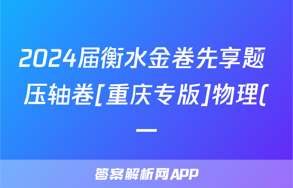 2024届衡水金卷先享题 压轴卷[重庆专版]物理(一)1答案正在持续更新,目前2024-2025衡中同卷答案网为大家整理了相关试题及答案,供大家查缺补漏,高效提升成绩。