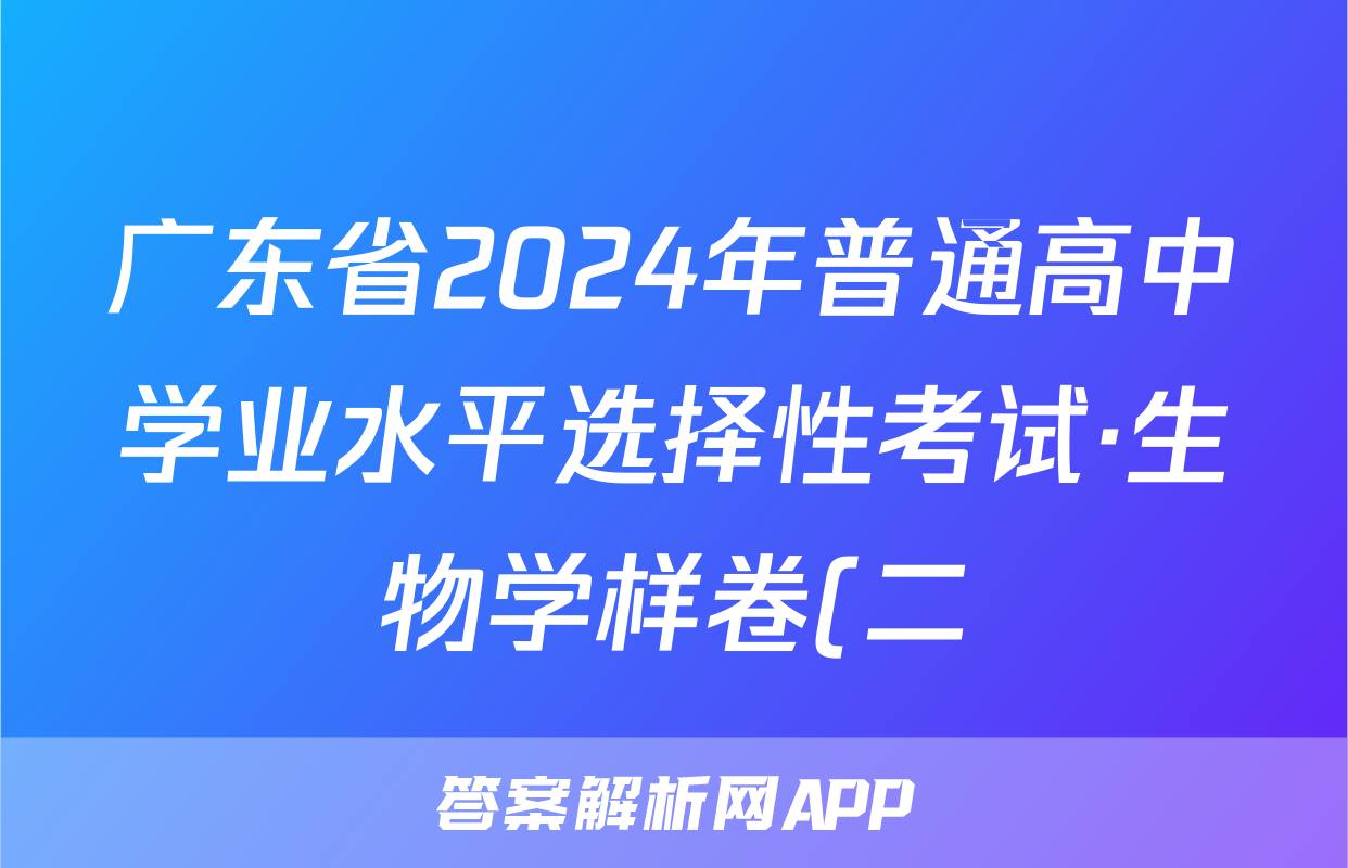 广东省2024年普通高中学业水平选择性考试·生物学样卷(二)2[24·(新高考)高考样卷·生物学·G DONG]试题正在持续更新,目前2024-2025衡中同卷答案网为大家整理了相关试题及答案,供大家查缺补漏,高效提升成绩。