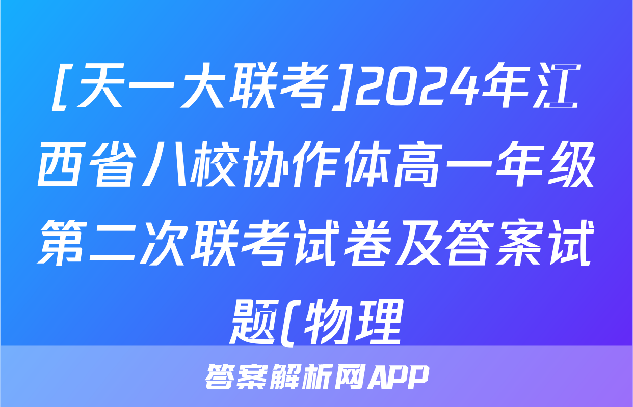 [天一大联考]2024年江西省八校协作体高一年级第二次联考试卷及答案试题(物理)正在持续更新,目前2024-2025衡中同卷答案网为大家整理了相关试题及答案,供大家查缺补漏,高效提升成绩。