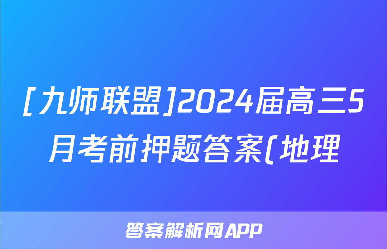 [九师联盟]2024届高三5月考前押题答案(地理)正在持续更新,目前2024-2025衡中同卷答案网为大家整理了相关试题及答案,供大家查缺补漏,高效提升成绩。