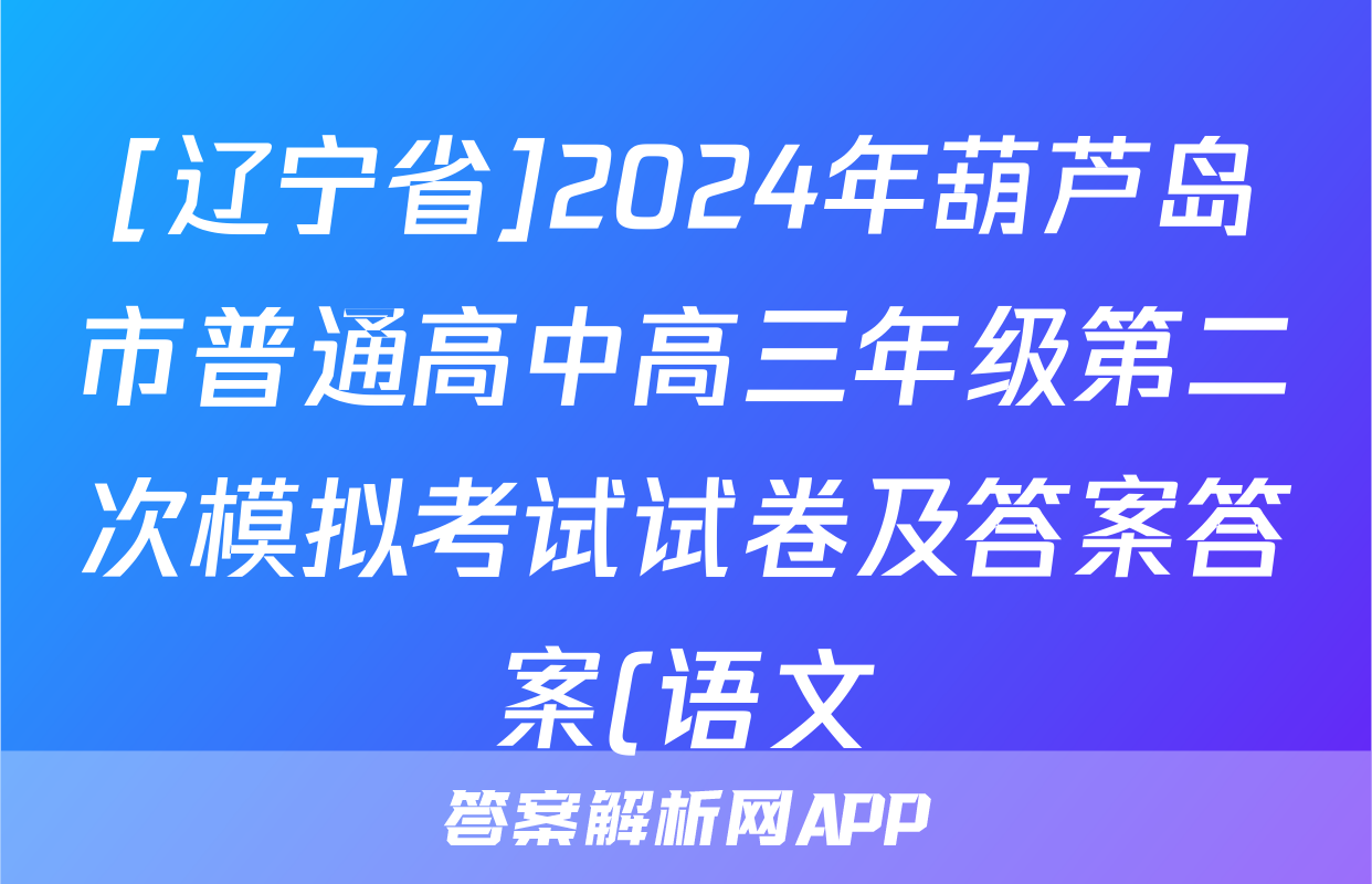 [辽宁省]2024年葫芦岛市普通高中高三年级第二次模拟考试试卷及答案答案(语文)正在持续更新,目前2024-2025衡中同卷答案网为大家整理了相关试题及答案,供大家查缺补漏,高效提升成绩。