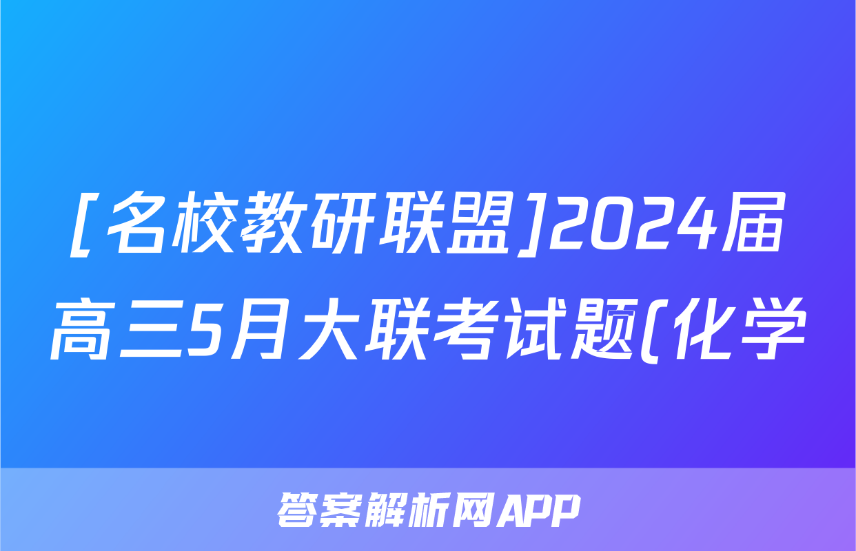 [名校教研联盟]2024届高三5月大联考试题(化学)正在持续更新,目前2024-2025衡中同卷答案网为大家整理了相关试题及答案,供大家查缺补漏,高效提升成绩。