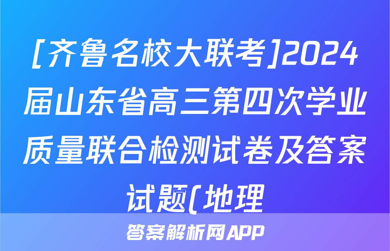 [齐鲁名校大联考]2024届山东省高三第四次学业质量联合检测试卷及答案试题(地理)正在持续更新,目前2024-2025衡中同卷答案网为大家整理了相关试题及答案,供大家查缺补漏,高效提升成绩。