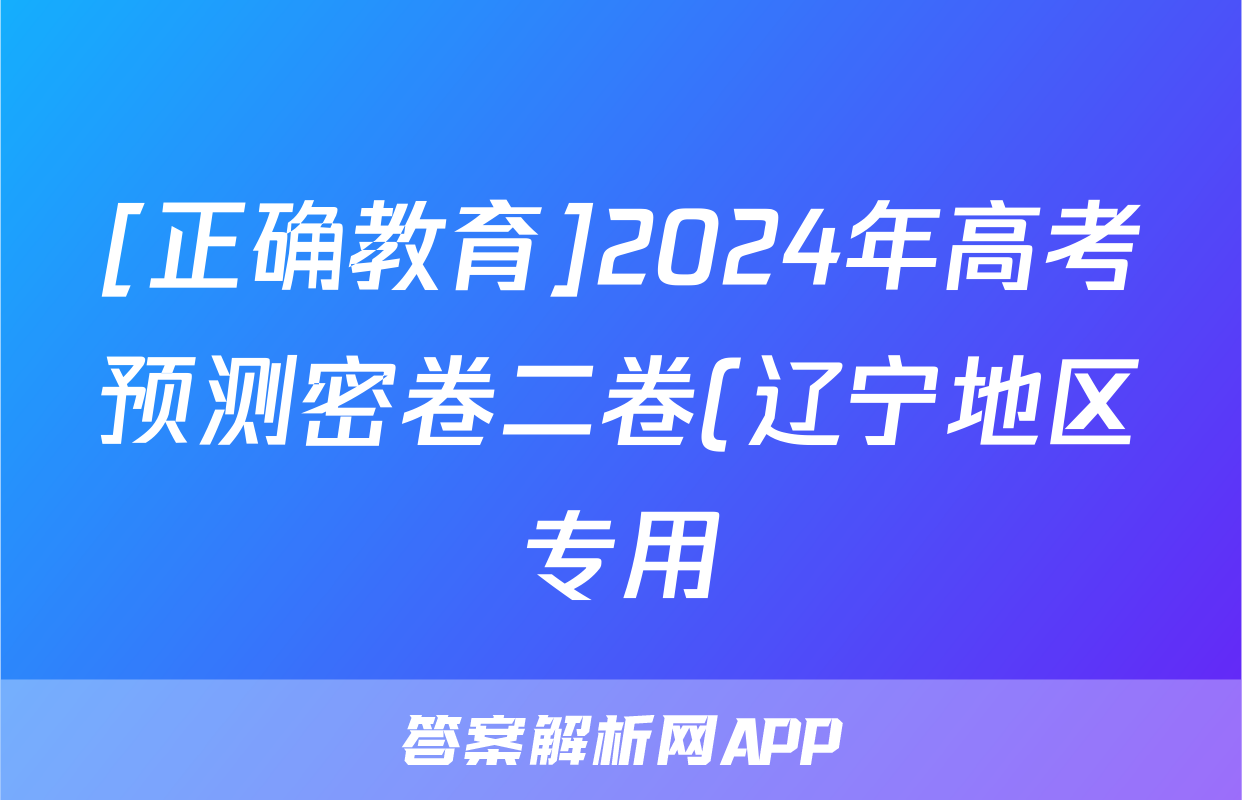 [正确教育]2024年高考预测密卷二卷(辽宁地区专用)历史(辽宁)答案正在持续更新,目前2024-2025衡中同卷答案网为大家整理了相关试题及答案,供大家查缺补漏,高效提升成绩。