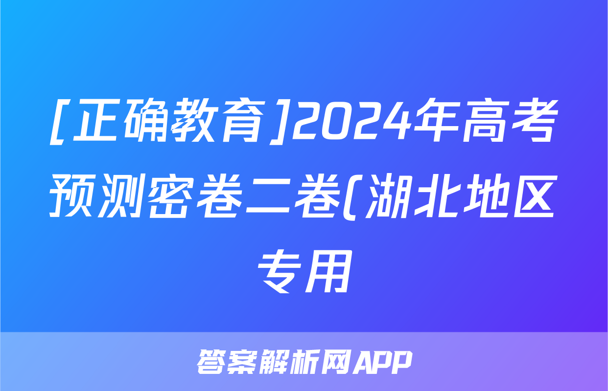 [正确教育]2024年高考预测密卷二卷(湖北地区专用)地理(湖北)试题正在持续更新,目前2024-2025衡中同卷答案网为大家整理了相关试题及答案,供大家查缺补漏,高效提升成绩。