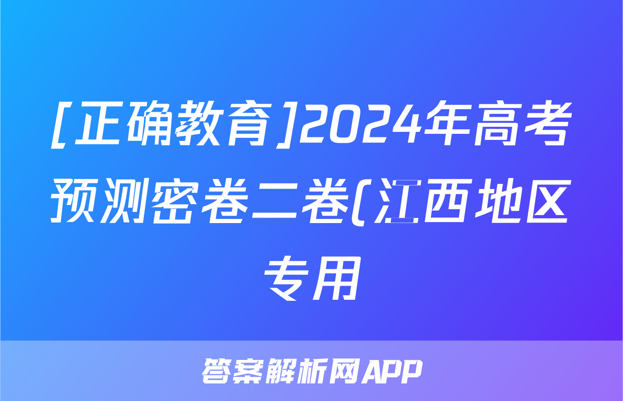 [正确教育]2024年高考预测密卷二卷(江西地区专用)地理(江西)试题正在持续更新,目前2024-2025衡中同卷答案网为大家整理了相关试题及答案,供大家查缺补漏,高效提升成绩。
