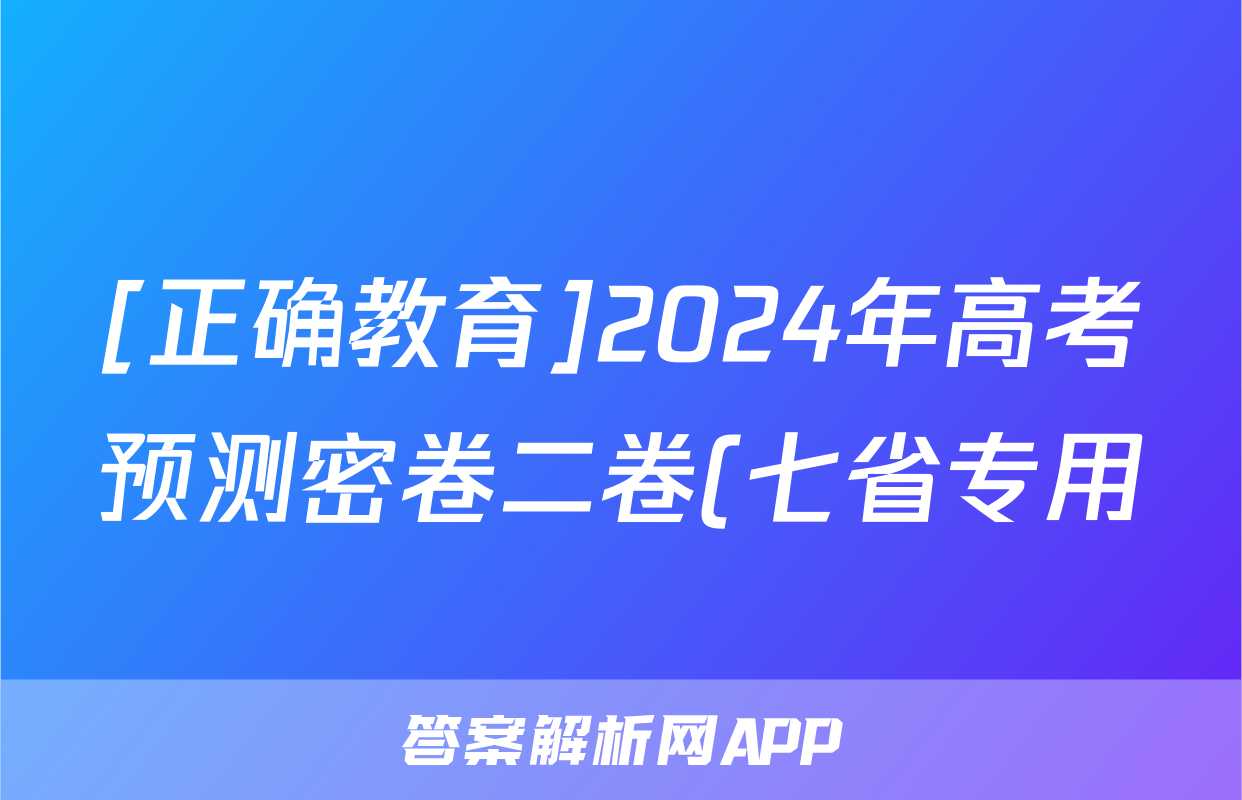 [正确教育]2024年高考预测密卷二卷(七省专用)历史(七省)试题正在持续更新,目前2024-2025衡中同卷答案网为大家整理了相关试题及答案,供大家查缺补漏,高效提升成绩。