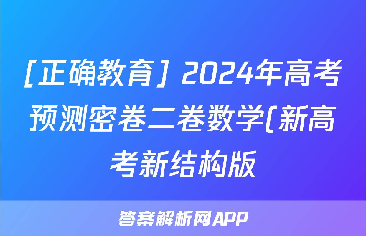 [正确教育] 2024年高考预测密卷二卷数学(新高考新结构版)试题正在持续更新,目前2024-2025衡中同卷答案网为大家整理了相关试题及答案,供大家查缺补漏,高效提升成绩。