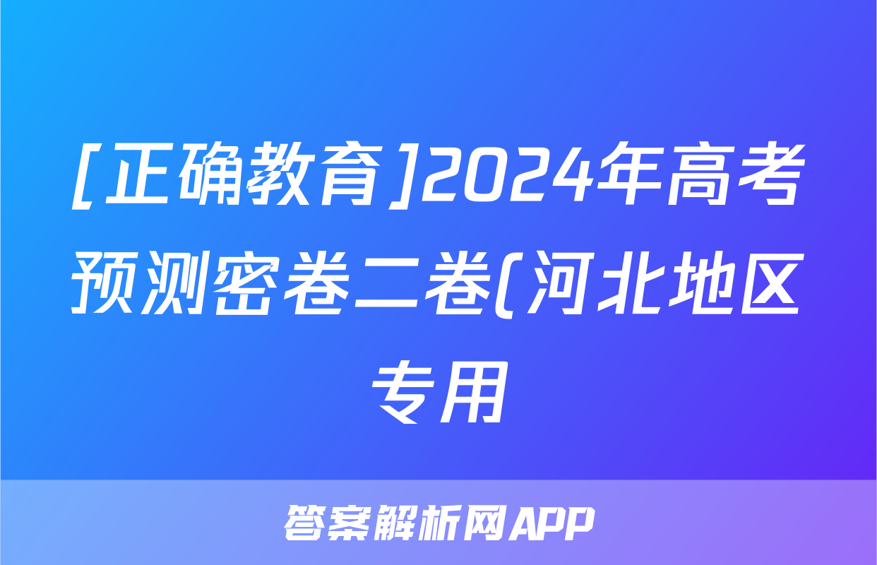 [正确教育]2024年高考预测密卷二卷(河北地区专用)化学(河北)试题正在持续更新,目前2024-2025衡中同卷答案网为大家整理了相关试题及答案,供大家查缺补漏,高效提升成绩。