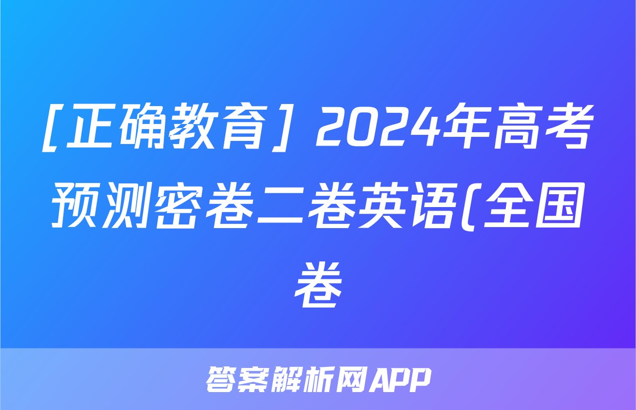[正确教育] 2024年高考预测密卷二卷英语(全国卷)试题正在持续更新,目前2024-2025衡中同卷答案网为大家整理了相关试题及答案,供大家查缺补漏,高效提升成绩。
