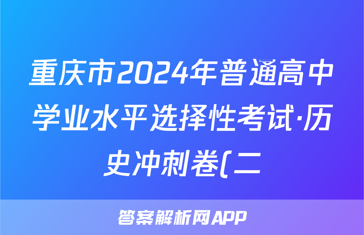 重庆市2024年普通高中学业水平选择性考试·历史冲刺卷(二)2[24·(新高考)CCJ·历史·CQ]答案正在持续更新,目前2024-2025衡中同卷答案网为大家整理了相关试题及答案,供大家查缺补漏,高效提升成绩。