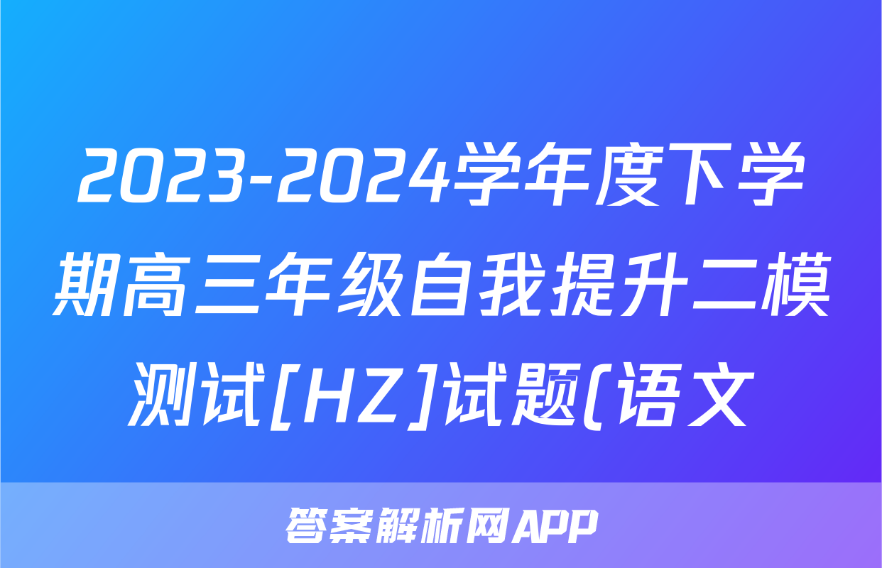 2023-2024学年度下学期高三年级自我提升二模测试[HZ]试题(语文)正在持续更新,目前2024-2025衡中同卷答案网为大家整理了相关试题及答案,供大家查缺补漏,高效提升成绩。