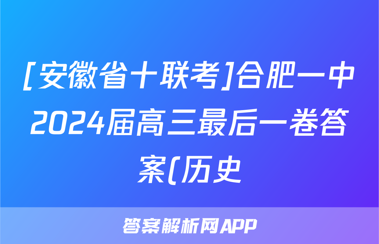 [安徽省十联考]合肥一中2024届高三最后一卷答案(历史)正在持续更新,目前2024-2025衡中同卷答案网为大家整理了相关试题及答案,供大家查缺补漏,高效提升成绩。