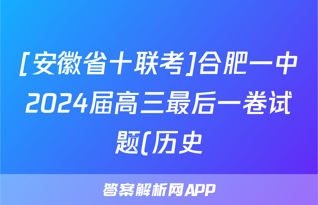 [安徽省十联考]合肥一中2024届高三最后一卷试题(历史)正在持续更新,目前2024-2025衡中同卷答案网为大家整理了相关试题及答案,供大家查缺补漏,高效提升成绩。