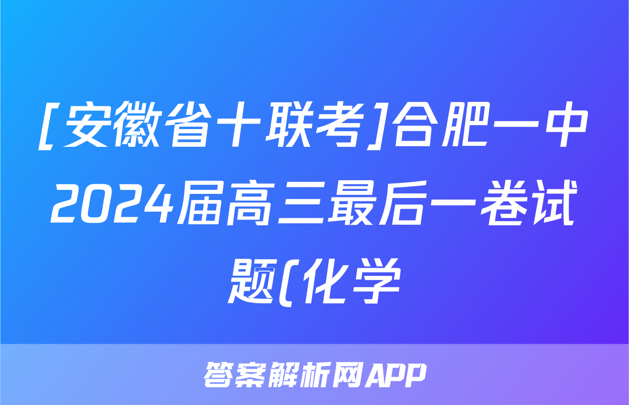 [安徽省十联考]合肥一中2024届高三最后一卷试题(化学)正在持续更新,目前2024-2025衡中同卷答案网为大家整理了相关试题及答案,供大家查缺补漏,高效提升成绩。