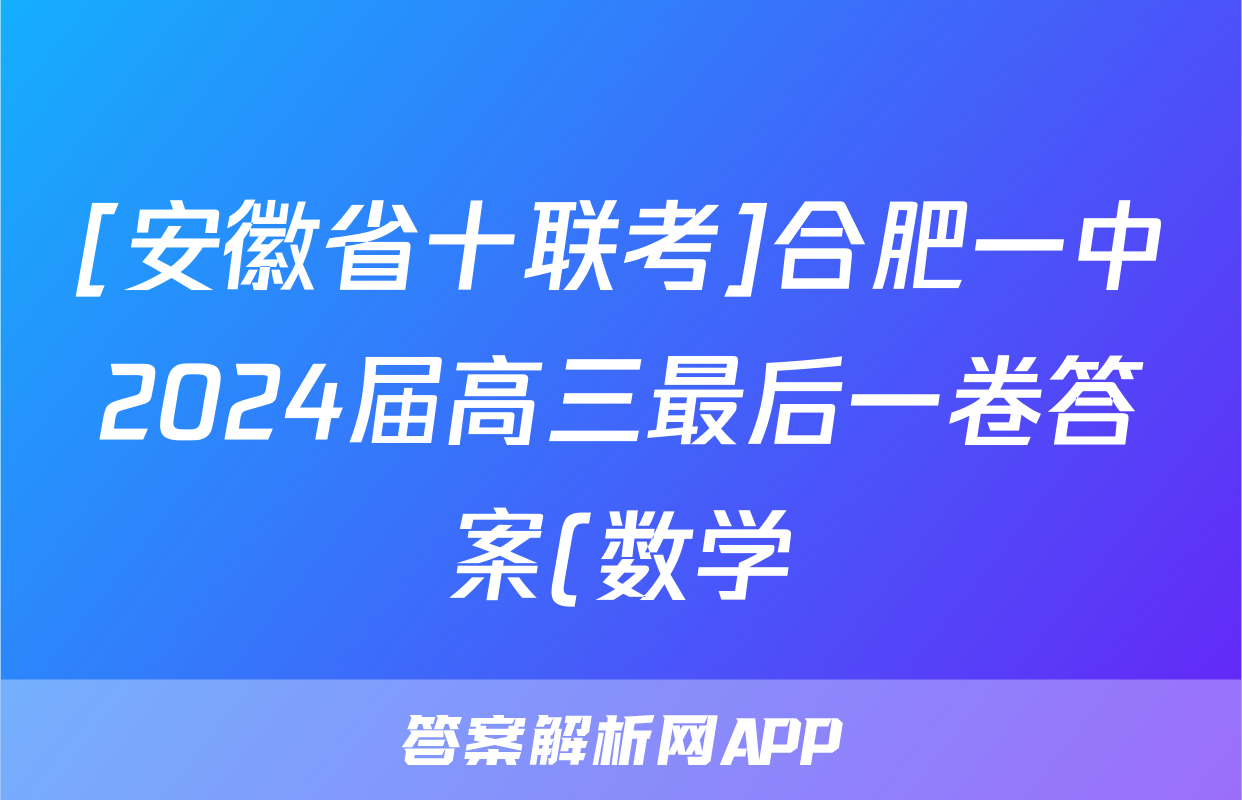 [安徽省十联考]合肥一中2024届高三最后一卷答案(数学)正在持续更新,目前2024-2025衡中同卷答案网为大家整理了相关试题及答案,供大家查缺补漏,高效提升成绩。
