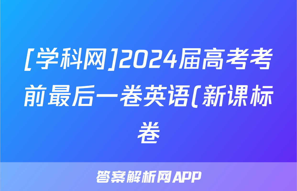 [学科网]2024届高考考前最后一卷英语(新课标卷)答案正在持续更新,目前2024-2025衡中同卷答案网为大家整理了相关试题及答案,供大家查缺补漏,高效提升成绩。
