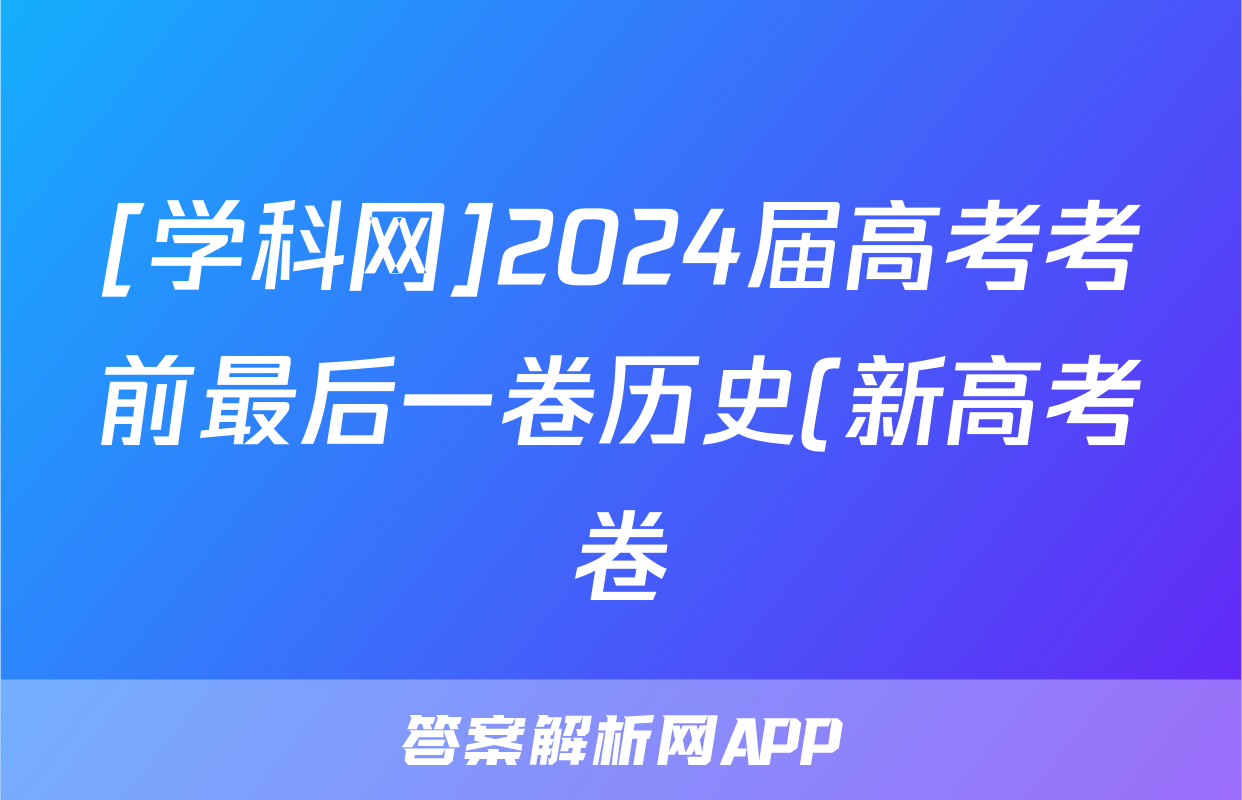 [学科网]2024届高考考前最后一卷历史(新高考卷)(新教材)试题正在持续更新,目前2024-2025衡中同卷答案网为大家整理了相关试题及答案,供大家查缺补漏,高效提升成绩。