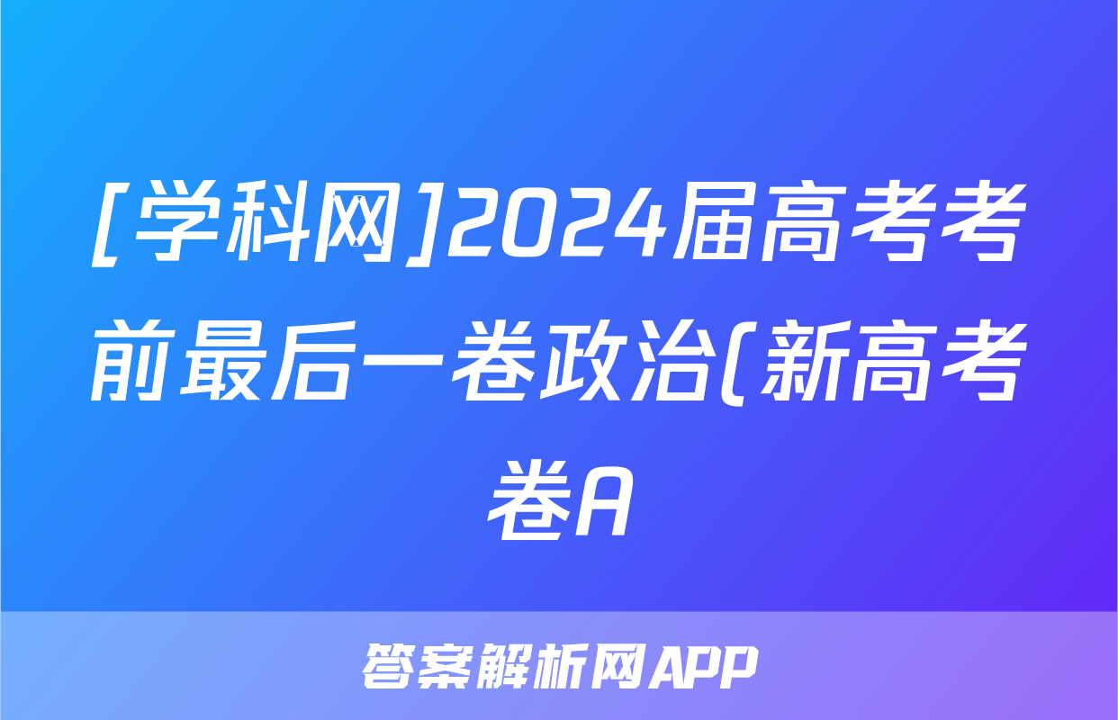 [学科网]2024届高考考前最后一卷政治(新高考卷A)(新教材)试题正在持续更新,目前2024-2025衡中同卷答案网为大家整理了相关试题及答案,供大家查缺补漏,高效提升成绩。