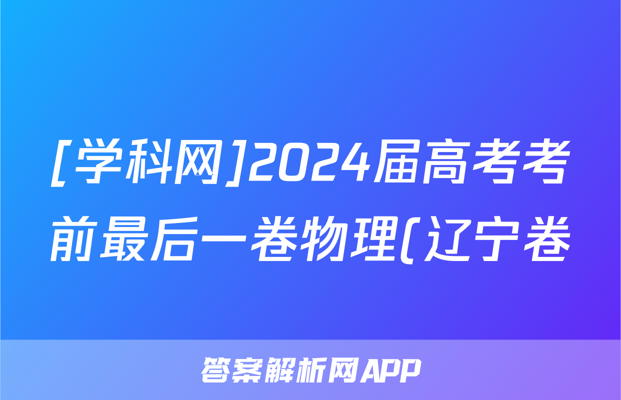 [学科网]2024届高考考前最后一卷物理(辽宁卷)试题正在持续更新,目前2024-2025衡中同卷答案网为大家整理了相关试题及答案,供大家查缺补漏,高效提升成绩。