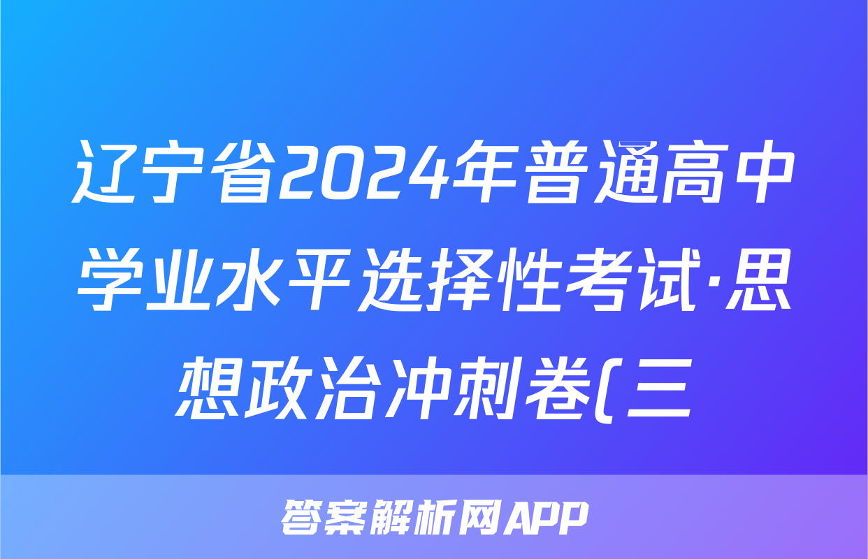 辽宁省2024年普通高中学业水平选择性考试·思想政治冲刺卷(三)3[24·(新高考)CCJ·思想政治·LN]答案正在持续更新,目前2024-2025衡中同卷答案网为大家整理了相关试题及答案,供大家查缺补漏,高效提升成绩。