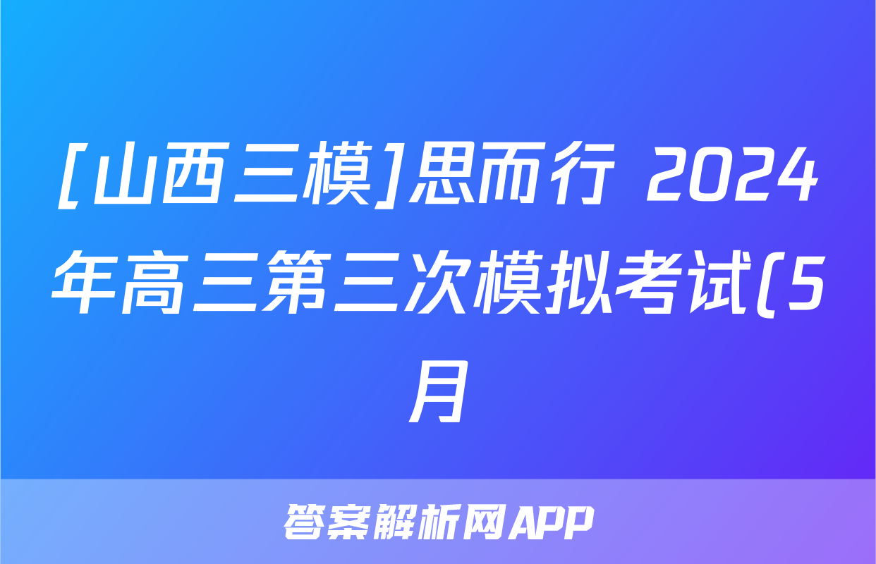 [山西三模]思而行 2024年高三第三次模拟考试(5月)试题(生物)正在持续更新,目前2024-2025衡中同卷答案网为大家整理了相关试题及答案,供大家查缺补漏,高效提升成绩。