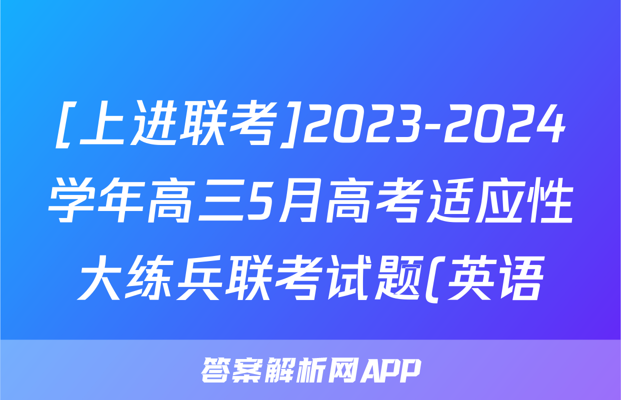 [上进联考]2023-2024学年高三5月高考适应性大练兵联考试题(英语)正在持续更新,目前2024-2025衡中同卷答案网为大家整理了相关试题及答案,供大家查缺补漏,高效提升成绩。