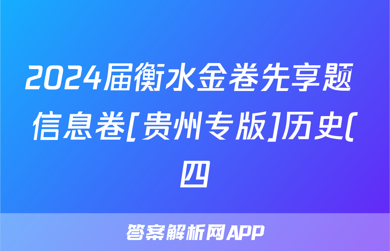 2024届衡水金卷先享题 信息卷[贵州专版]历史(四)4答案正在持续更新,目前2024-2025衡中同卷答案网为大家整理了相关试题及答案,供大家查缺补漏,高效提升成绩。